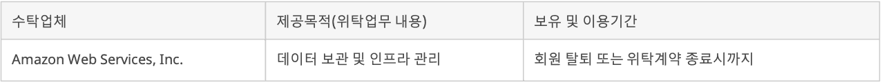 회사는 원활한 업무 처리를 위하여 다음과 같이 개인정보 처리 업무를 국내⋅외에 위탁하고 있습니다.