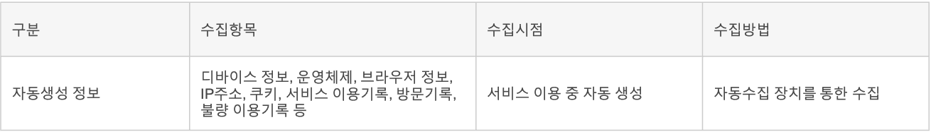 2. 서비스 이용 중 자동으로 수집되는 정보