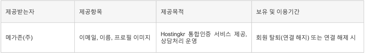 1. 개인정보 제3자 제공 내용(메가존 그룹사 통합 인증 서비스 제공 시)